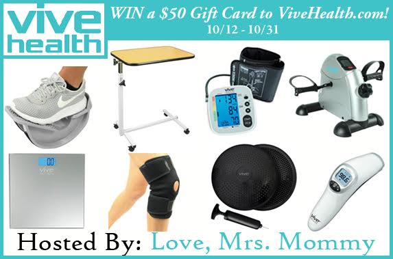 Vive Health offers an amazing selection of health-related products. They carry everything from blood pressure monitors to splints as well as walking aids to alarms. If you are injured or are caring for an elder, you should definitely check out their products. They offer free shipping on everything and have a wonderful guarantee policy. I dig this activity and will recommend this to everyone! Come one and sign up to win a gift card from them!
