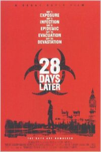 The plot is as follows: 28 Days Later gets its haunting narrative underway as we see are taken to a top-secret research lab in Cambridge where a group of monkeys is having experiments conducted on them in order to test a highly transmissible and quite destructive rage virus. Things soon go awry however when this rage virus is accidentally unleashed when a team of individuals belonging to that distinct subculture known as the animal liberation movement break into the place and, against the pleas of one of the researchers, set these disease-stricken chimps free only to fall prey to this deadly virulent strain themselves. From there we see that in the aftermath of 28 days having come and gone since this particular incident (hence the title), a solitary courier by the name of Jim wakes up in a hospital that we soon learn has been completely and utterly abandoned. Yet it isn’t just the hospital that has been abandoned; rather it is the entire country of Great Britain it appears that has been the subject of a massive exodus. Yet while our intrepid hero is busy trying to find anything he could wear, use, or eat we see him walk into a church only to stumble upon both a massive pile of dead bodies and a zombieesque priest who sees Jim as a fresh meal. So it is that when he is running away from the church that our hero is saved by a pair of fellow survivors by the names of Selena and Mark who take him back to their “base” and reveal what’s going on in full. Namely that in the aftermath of the incident at the research lab, the virus managed to get out and infiltrate seemingly everywhere from London to small little towns in the countryside at such a frightening rate of speed that it annihilated the vast majority of Britain’s armed forces and centers of government. Along with that, we also learn that those who become infected with this virus are swift, homicidal to a t, and also typically do their thing at night as well as the fact that the way you become infected is either by being bit by someone who is infected or if an infected person’s blood gets in your mouth or another orifice on your body. Thus with those facts established, we see our heroes decide to embark on a distinct odyssey. One that may see them head from locale to locale, gain and tragically lose people, and go up against sinister forces of both these rage creatures and evils that are still on the human side, but which ultimately has one goal in mind and that is no more and no less than to find a place where they can truly be safe and begin to hopefully restore the human populace anew…