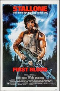 The plot is as follows: Based on a novel by David Morell, First Blood takes us to the Pacific Northwest and gets its riveting tale underway by introducing us to a guy doing something that we all have most likely done a million times before. That being making his way to see an old friend of his. Sadly however, we soon learn, along with the man who we also learn goes by the name of John Rambo, that his friend has tragically passed away as a result of cancer caused by his being exposed to something known as Agent Orange during his time fighting in that particularly infamous conflict known as Vietnam. More than just a tad bit disheartened, we soon witness as Rambo continues his travels which soon see him arrive in the small yet picturesque little community of Hope, Washington. A place that prides itself on being a quiet and tranquil spot that also has a no drifters policy unofficially yet firmly in place. Something that the town sheriff, one Will Teasle, is determined to ensure he is able to maintain. Perhaps this is why, upon seeing our hero making his way toward his town, we see the sheriff pick him up in his car and give him a lift through town in the hopes that he’ll keep moving ahead and just put Hope as far in his rearview mirror as he possibly can if you get my drift. Unfortunately, we see that this doesn’t quite sit right with Rambo who, upon exiting the sheriff’s car, proceeds to try and head right back into town. As you can possibly imagine dear reader, this doesn’t quite sit well with our dedicated “man of the law” and as such we see him make the choice to arrest Rambo and charge him with vagrancy, resisting arrest, and possessing a concealed knife. Yet it isn’t long before we witness as, in the middle of Teasle’s gung-ho deputies (with the exception of one) “cleaning him up”, something in Rambo just goes off and he proceeds to wipe the floor with all of them, take back his knife, and flee on a stolen motorcycle deep into the woods outside of town. As a result, we see that Sherriff Teasle and his deputies decide to give chase (as officers of the law are known for doing when someone engages in such action). By doing so however, we see that the stage has been set for a conflict unlike any other that these deputies have encountered. This is because the man they are hunting is not just a Vietnam vet himself, but also a member of that distinct yet elite group known as the Green Berets. Thus not only have the hunters now become the hunted, but a man who thought he had left the horrors of war far behind him will now have to engage his survival and combat skills once more to survive this unjust and relentless manhunt against him. As for the outcome for all the parties involved however that you will have to discover for yourself….