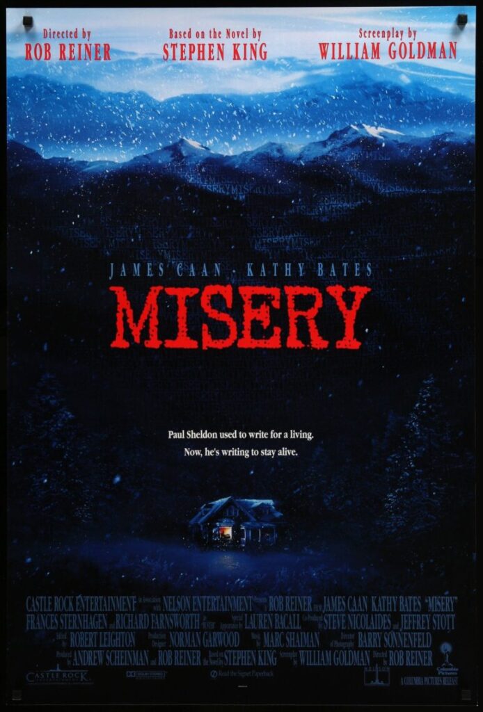 The plot is as follows: Misery is the story of a man by the name of Paul Sheldon. Mr. Sheldon, we quickly learn, is an extraordinary success in the literary world thanks in no small part to a series of romance novels with a heroine by the name of Misery Chastain which have all been runaway hits and made him a fair penny or two along the way. When out story opens however, we learn that Paul has gotten exasperated with writing this series and is deciding to work on a novel that, in his eyes, is a much more “legit piece of work”. Thus, and upon completion of the manuscript for this novel, we see Paul head out from a locale known as Silver Creek Lodge and head down a mountain road in the middle of a dangerous snowstorm in order to get his agent the manuscript. Things soon go from bad to worse when the snowstorm results in Paul getting in a car accident which results in the car landing in a snowdrift and Paul coming into possession of a pair of broken legs, one dislocated shoulder, various other injuries, and quite possibly a partridge and pear tree (joking, joking). Thankfully (?) for our intrepid hero, a local woman by the name of Annie Wilkes finds the wreckage and pulls Paul out of the car before taking him to her remote house and begins nursing him back to health. Upon coming to, Paul is quite thankful for her care and soon learns that she is a nurse and loyal fan who is simply just happy that he is there in her home. Unfortunately for Paul it appears, according to Annie, that due to the storm both roads and telephones are inoperative at the moment so she can’t quite tell anyone where he is right away. Of course I guess I should also mention that this whole time Annie has been quite the polite and considerate host even if she does seem just a tad bit lonely. I bring this up dear reader because, upon discovering and reading Paul’s manuscript which she also pulled out of the wreckage, Annie goes completely off the rails, becomes quite upset, and also expresses her overwhelming disappointment at just how much swearing there is within the page. Yet it is when she reads the latest Misery Chastain book that we see Annie go completely nuts since, unbeknownst to her, Paul has killed off Misery (her favorite character in ALL of fiction) and feels personally stabbed in the back. To that end, we see Annie use Paul’s condition against him in order to ensure that he not only destroys his brand-new manuscript, but to also conjure up a new story in which Miss Misery is brought to the land of the living. Thus as Annie’s behavior continues to become more and more both violent and deranged, our poor helpless hero finds himself struggling to go along with her wishes as far as his limits will allow whilst also attempting to figure out a means of escape from this cockadoodie nightmare….