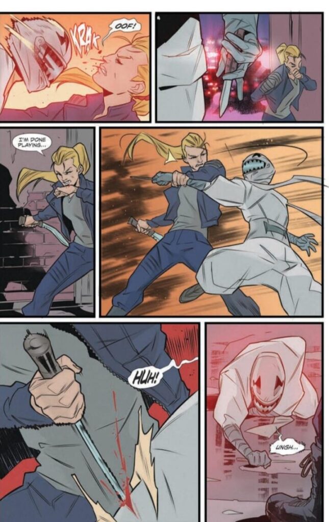 - The cover itself is just fantastic. I love how the colors focus on the details of her facial expressions, setting, and fighting suit/weapon(s).