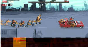 -The art and game design! The game reminds me of a comic book sans the words but more with metal music, zombies, and of course the band themselves! The art throughout the game was simple, not too glamorous, but gave Double Kick Heroes its personality. The aspect of a comic book fee was there and I feel they were going for that.