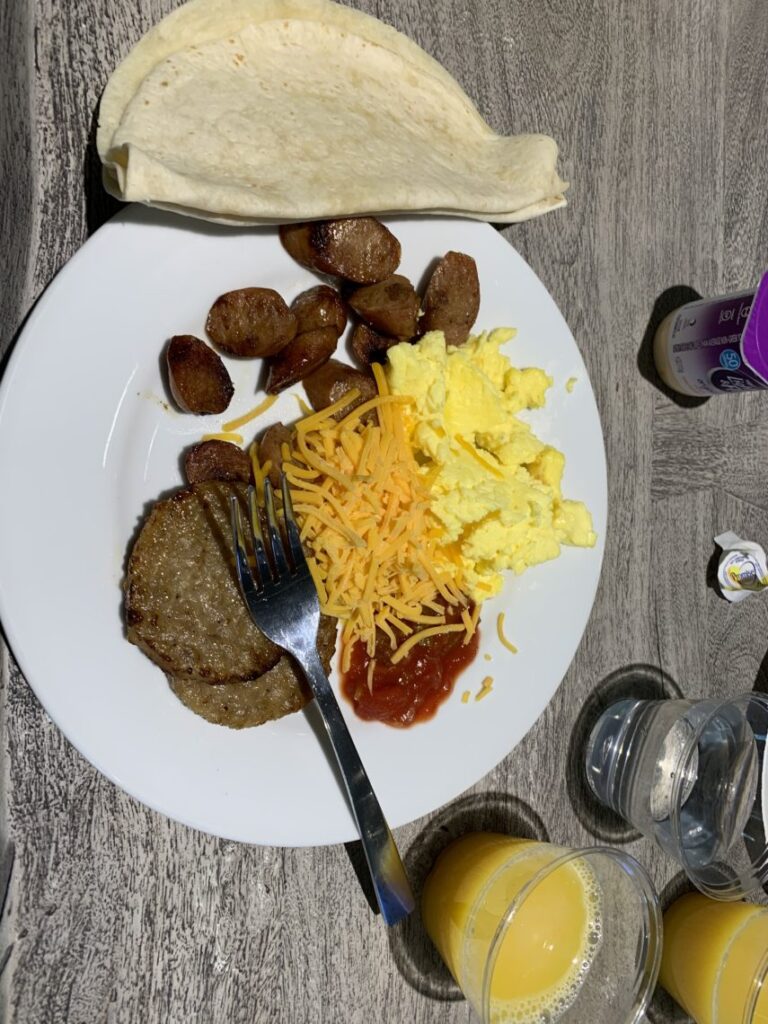 The rooms were decent, the bed was a little hard on my back and the pillows hurt my neck so the relaxation wasn’t there. The shower was amazing as it was big, spacious and had some good soap in there. The food was amazing there during their breakfast buffet. They had eggs, sausage, cereal, tortillas, waffles, oatmeal and much more. My team and I engulfed that breakfast table and ate like it was no tomorrow.