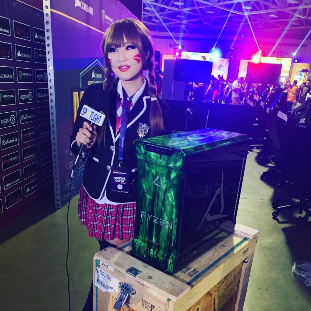 We were able to have nationally renowned cosplayer and model Jenny Belly help out with interviews for us. She did an amazing interview with CLX Gaming and did an unboxing on of their models. CLX Gaming had streamers throughout the whole day rotating schedules and having fun online.