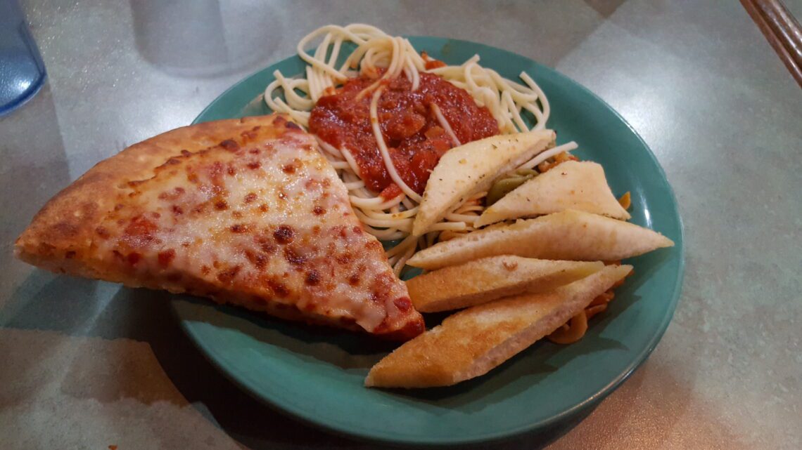 The pizza was just incredible, I enjoyed the jalapeno and pepperoni sliced pizza and of course the hamburger pizza. The salad was just delicious with so many toppings, it was hard to chose from but I was able to get a decent amount. They also had spaghetti, noodle salad, and my favorite, cheese sticks. I got a good amount of food on my multiple plates but who could say no lol.