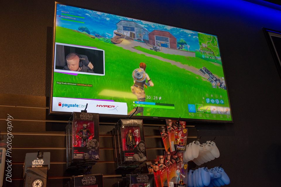 Your able to watch the latest streams from either Mixer or Twitch on the big screens there at the venue. There are screens all over the place and even you can be featured on the screens while playing a game. You can even watch some of your favorite streamers on there as well. Talk to the staff and let them know that and you can watch your favorite streamers while lounging on the cool couches they have there.